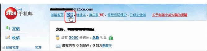 1、登录您的21cn邮箱,点击邮箱中的设置;