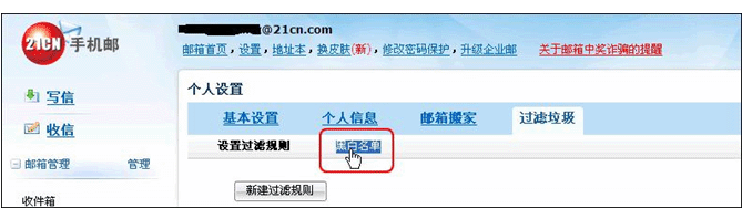 21cn邮箱白名单设置指引