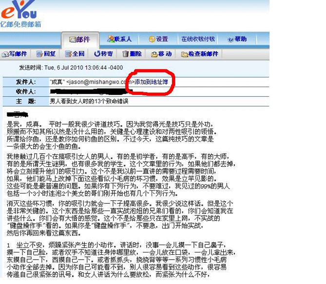 2、打开邮件,点击添加到地址簿;